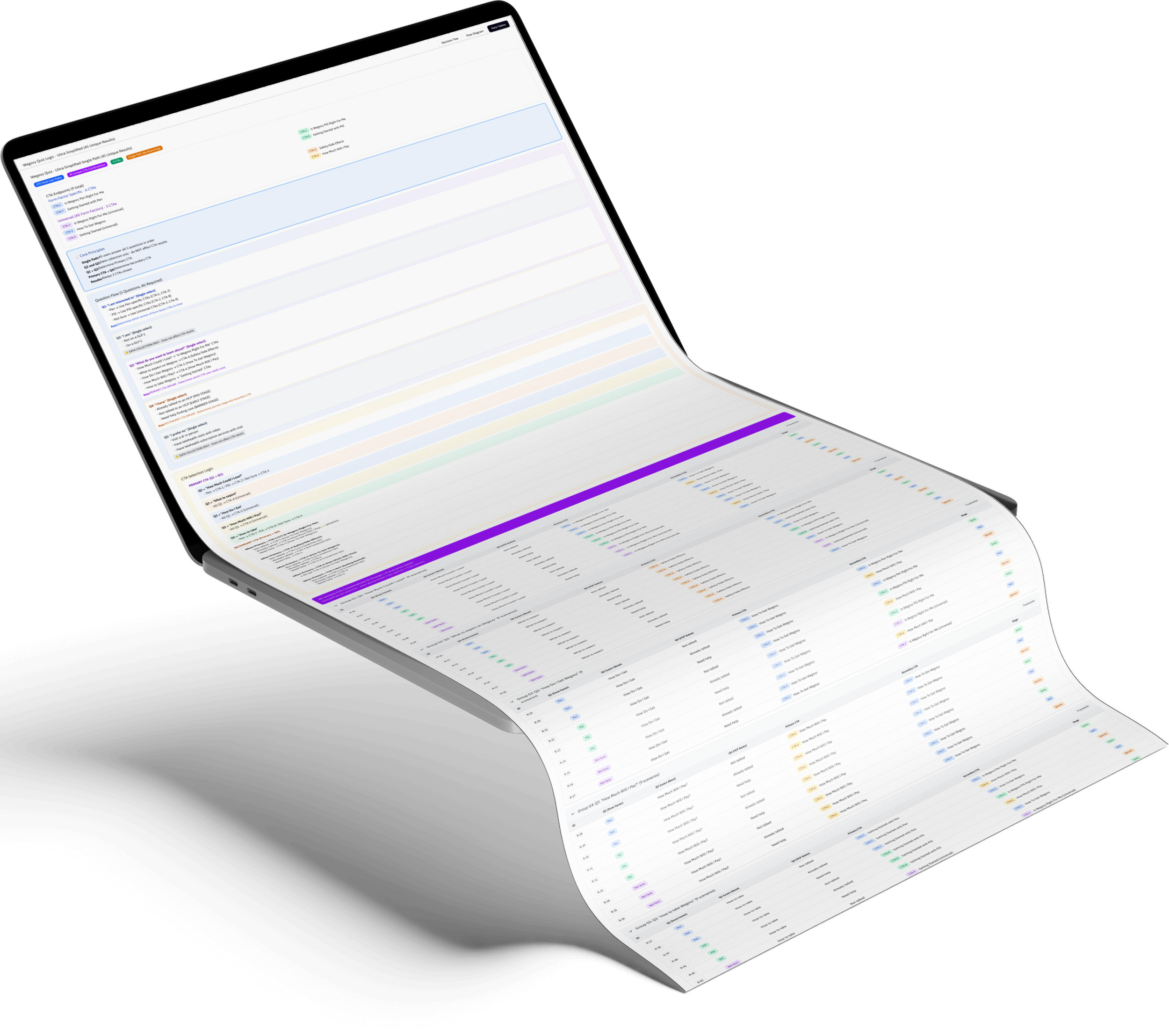 I used ChatGPT and Claude to architect the selection matrix—mapping every possible answer combination to appropriate outcomes. Figma Make helped prototype the interaction. The result was a complete logic framework that I handed to the authoring team, giving them everything they needed to build the quiz perfectly in AEM.